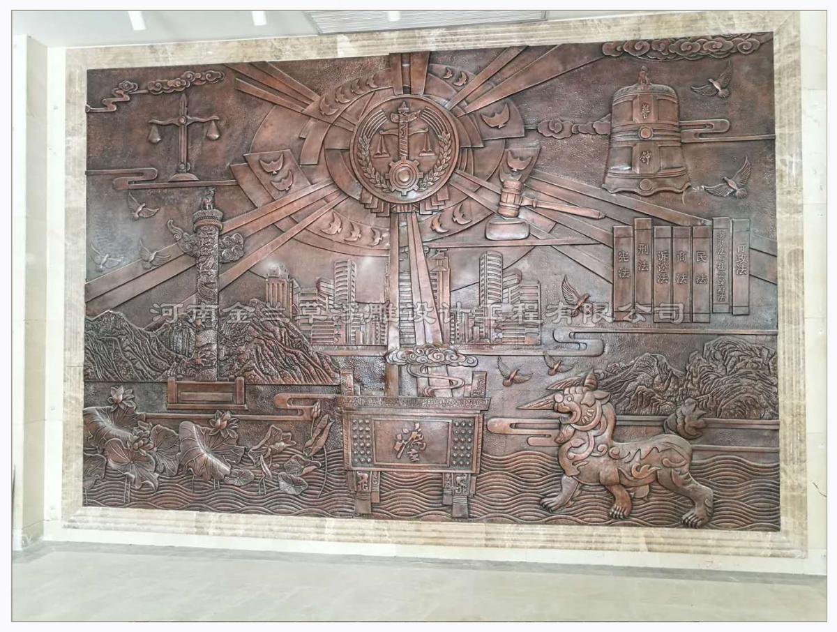 法院背景墻浮雕因為裝飾需求,大堂浮雕墻在法院背景墻浮雕的裝飾中運用較多,浮雕質(zhì)感古樸典雅,大方美觀,
